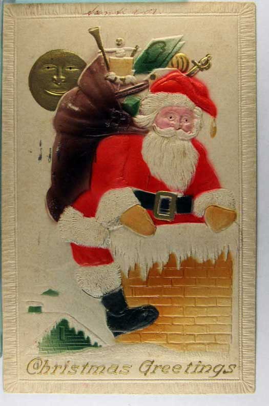 Card # 193726. View Larger | Rotate Red Suited Santa w/ Silk Add-Ons DB emb cor wear Near F-VF