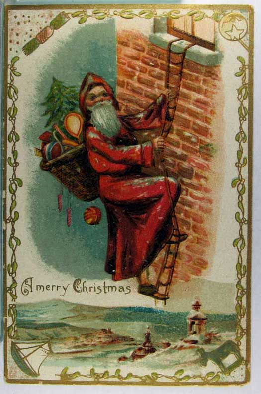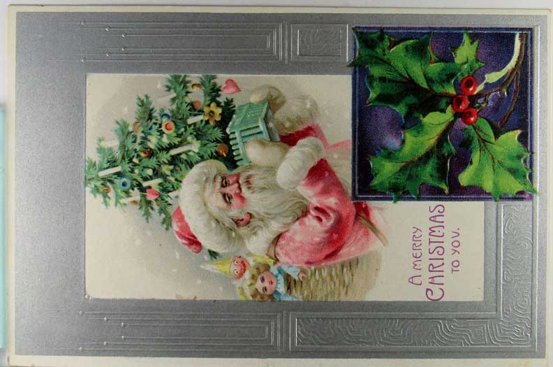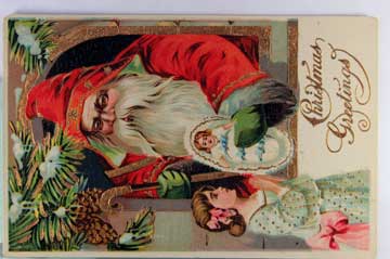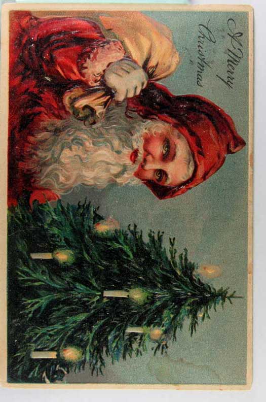 Card # 175427. View Larger | Rotate Red Suited Santa w/ Angel UB m tinsel VF