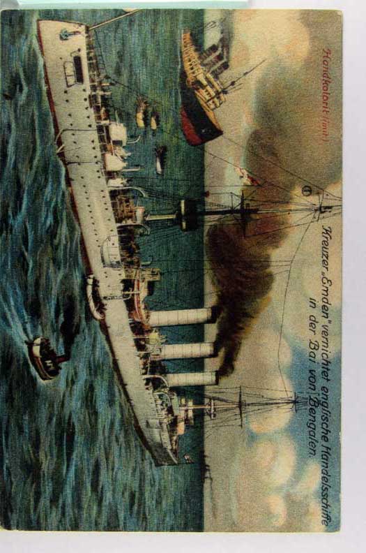 Card # 178657. View Larger | Rotate W.W. I, German Pub., “Kreuzer” w/ Sinking Ship DB Near VF