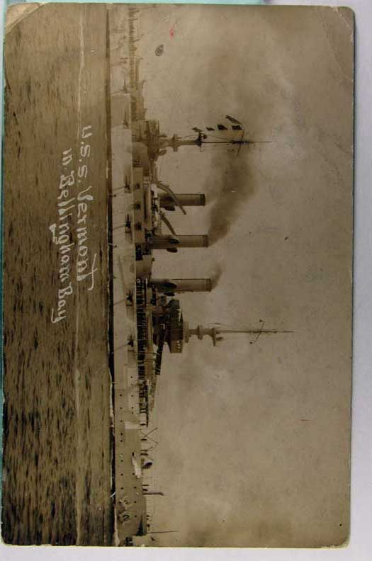 Card # 162189. View Larger | Rotate Great White Fleet Related, SS Vermont, Real Photo, Used 1908, “Bellingham Bay” cor wear & cor crs Near F-VF