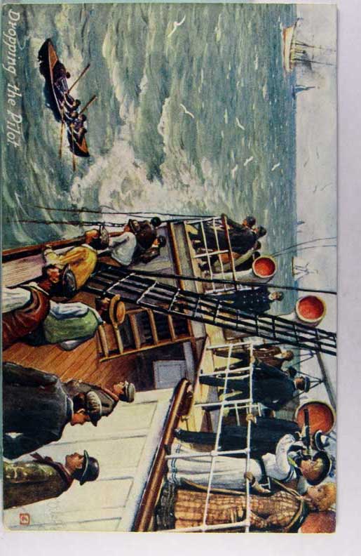 Card # 185637. View Larger | Rotate Shipping Related, R. Tuck Pub., A Trip to Europe Ser. #2908, “Dropping the Pilot” DB m cor album marks VF