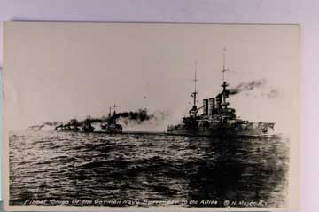 Card # 131958. View Larger | Rotate W.W. I, “Finest Ships of the German Navy Surrender..”, Real Photo w/ AZO P.C. Back VF