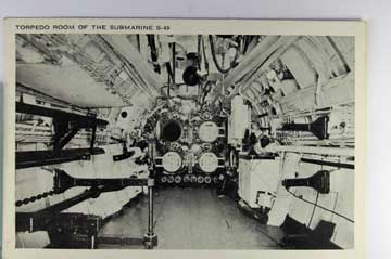 Card # 135765. View Larger | Rotate Submarine Torpedo Room at 1936 Great Lakes Expo., Cleveland WB VF