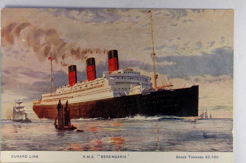 Card # 165377. View Larger | Rotate Adv. Cunard Line, “RMS Berengaria”, British Pub. DB VF