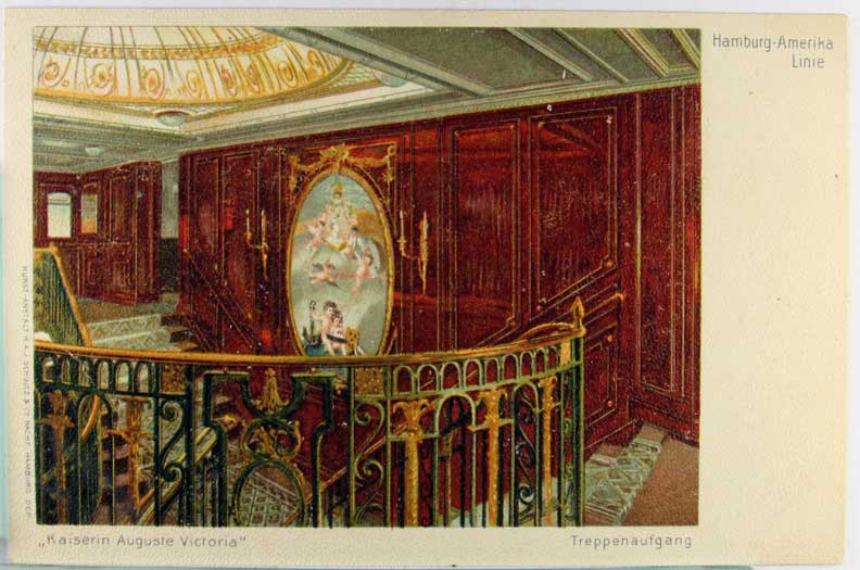 Card # 164407. View Larger | Rotate Hamburg-Amerika Line, “Kaiserin August Victoria”, Quality Ship Interior View DB VF