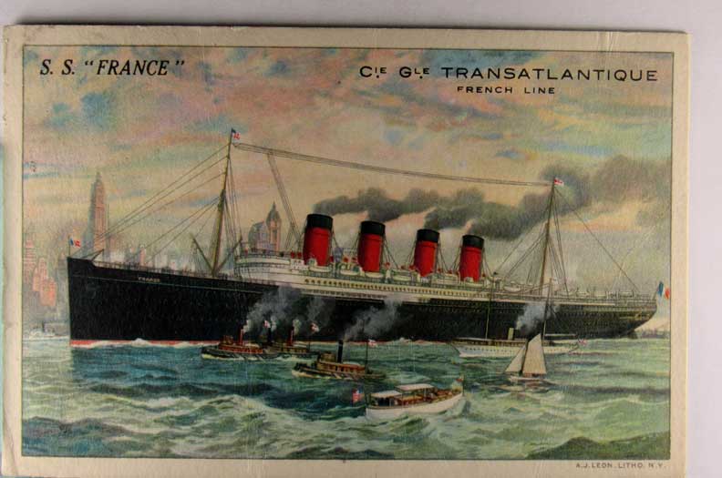 Card # 145840. View Larger | Rotate French Line, S.S. France, Used U.S. French Sea P.O., July 21, 1914 Cancel crs & edge wear Near F-VF