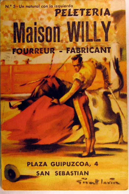 Card # 84743. View Larger | Rotate Bullfighting, Adv. Maison Willy, San Sebastian, Spain, Used Same 1958 m cof F-VF