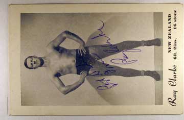 Card # 2979. View Larger | Rotate Ray Clarke, New Zealand, 6ft. 2ins, w/ Autograph, Printed Photo non p.c. back F-VF