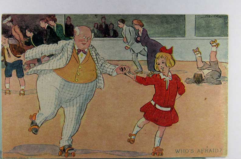 Card # 193837. View Larger | Rotate Roller Skating Ser. #9, cpr. R. Hill 1907, Art. Sig. Brill, “Who’s Afraid?” DB m edge nick Near VF