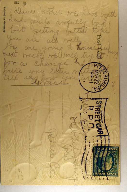 Card # 16499. View Larger | Rotate Pittsburgh, Pennsylvania Street Car R.P.O. Flag Cancel DB emb F-VF
