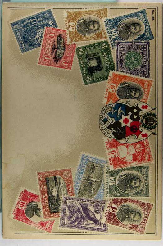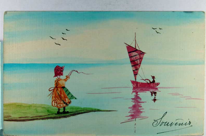 Card # 166599. View Larger | Rotate Stamp Montage, Novelty Hand-Painted w/ Non P.C. back m wear F-VF