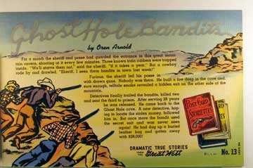 Card # 11199. View Larger | Rotate Postcard Storiettes Ser. Pub. Curteich, Great West Ser. #13 “Ghost Hole Bandits” L VF