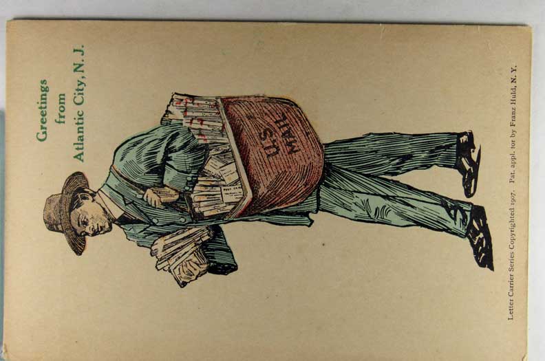 Card # 142105. View Larger | Rotate Letter Carrier Ser. cpr. 1907, w/ Novelty Mail Pouch UB m cor wear & m cor cr F-VF