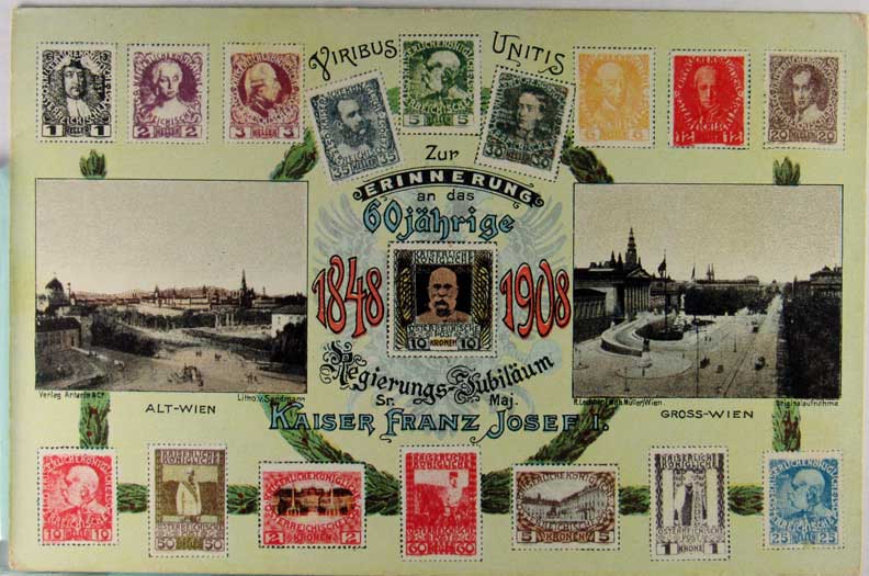 Card # 157707. View Larger | Rotate Austrian Stamp Card, Kaiser Franz Joseph 1908 Jubilee DB m cor wear F-VF