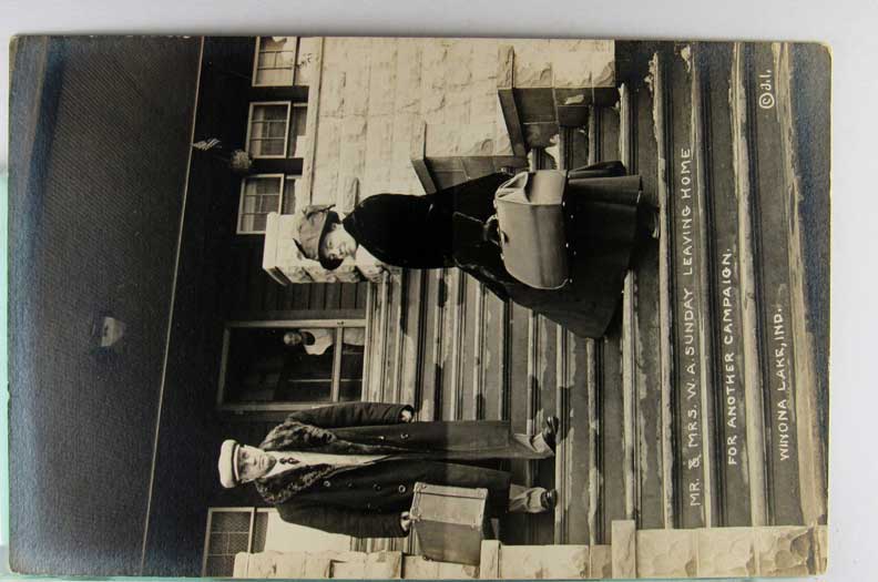 Card # 159196. View Larger | Rotate Religious, Reverend Billy Sunday w/ Wife, Real Photo w/ AZO P.C. back, Winona Lake, Indiana VF