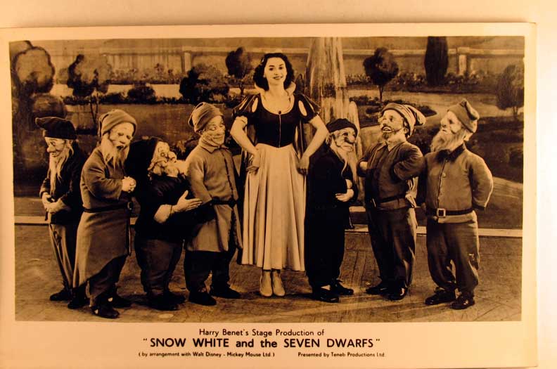 Card # 14809. View Larger | Rotate B&W Photo, “Snow White and the Seven Dwarfs”, Stage Production, England F-VF