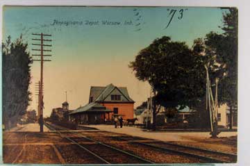 Card # 159346. View Larger | Rotate Depot, Warsaw, Indiana, Tinted Photogravure, Used Same 1908 DB m wof & m cof VF