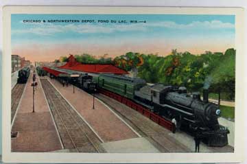 Card # 172858. View Larger | Rotate Train Depot, Fond Du Lac, Wisconsin, Kropp Pub. WB VF