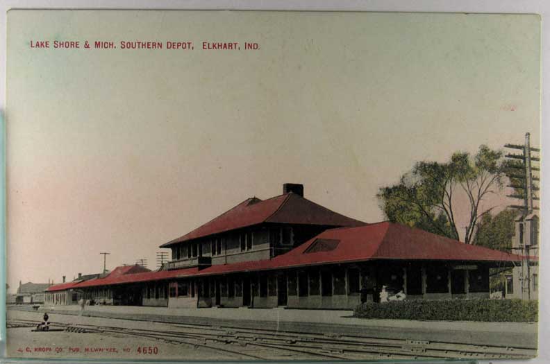 Card # 176158. View Larger | Rotate Depot, Indiana, Elkhart, Tinted Printed Photo, Dated 1910 DB cor cr F-VF