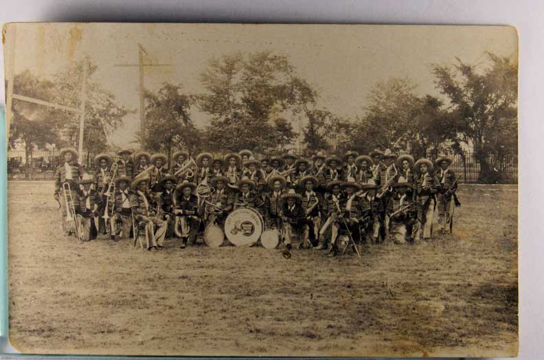 Card # 177059. View Larger | Rotate Missouri Pacific Line Related, Real Photo w/ AZO P.C. back, “Los Toreadores Band”, Unusual cor flt