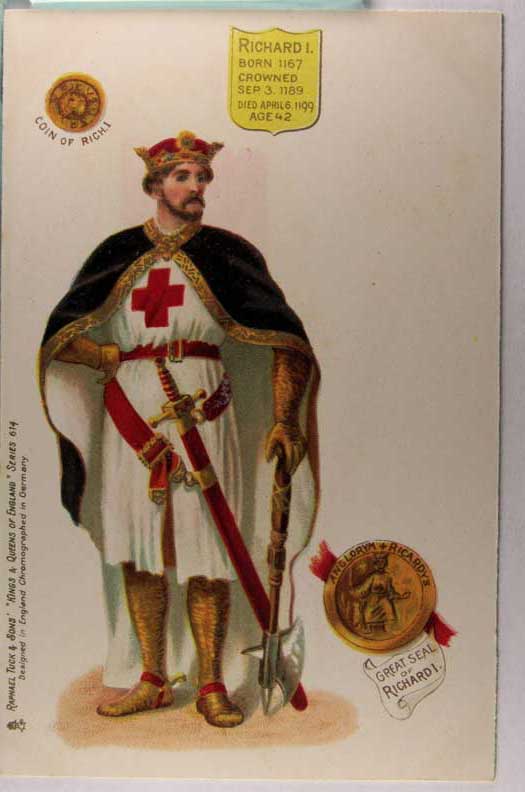 Card # 160381. View Larger | Rotate British Royalty, R. Tuck pub. Kings & Queens of England ser. 614, King Richard I UB VF