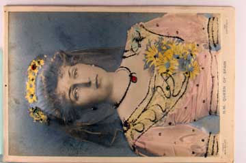 Card # 197344. View Larger | Rotate Spanish Royalty, Bas-Relief Tinted Real Photo, “HM Queen” DB VF