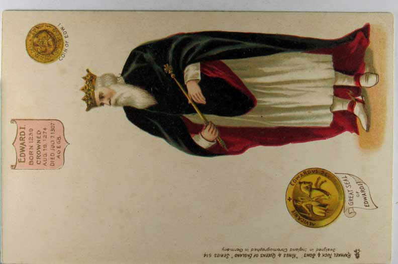 Card # 160395. View Larger | Rotate British Royalty, R. Tuck pub. Kings & Queens of England ser. 614, King Edward I UB m paper on face VF