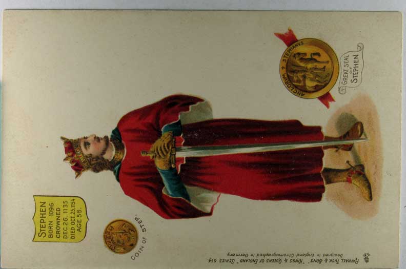 Card # 181372. View Larger | Rotate British Royalty, R. Tuck Pub. Rulers of England Ser. 614, Stephen UB VF