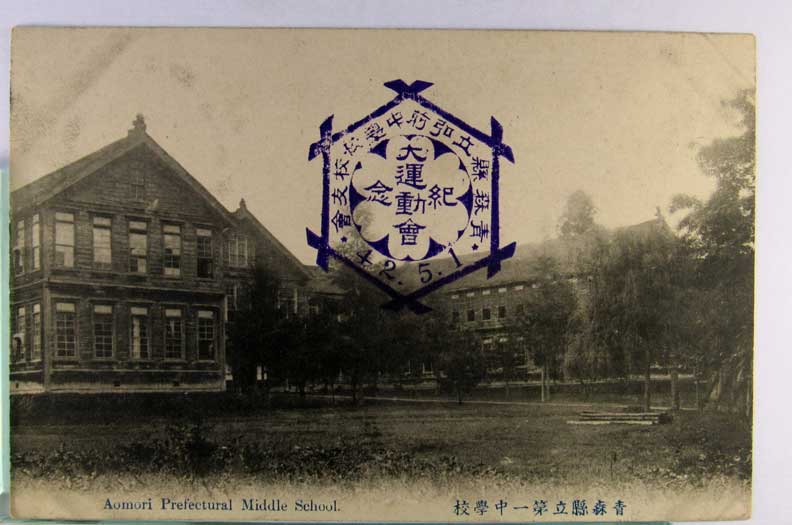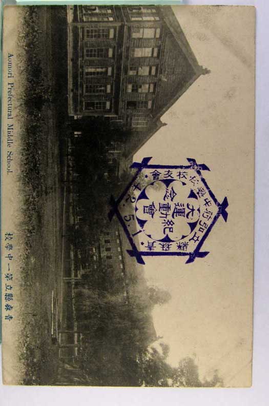 Card # 155167. View Larger | Rotate Japan, Aomori, “Prefectural Middle School”, Photogravure w/ CTO m cor album marks F-VF