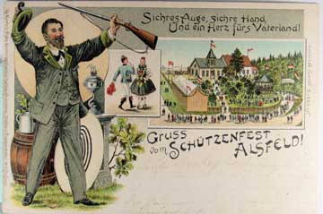 Card # 151370. View Larger | Rotate Germany, Alsfeld, Gruss Vom Shooting Festival, Used Same 1896 m p wof F-VF