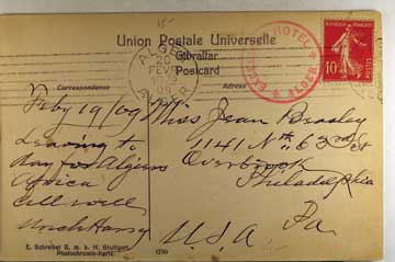Card # 13988. View Larger | Rotate Gibraltar, Harbor View Used Alger 1909 w/ French Stamp to U.S. DB F
