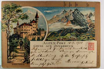 Card # 179011. View Larger | Rotate Austria, Innsbruck, Gruss Aus, Used 1908 pwof & m cor cr F-VF