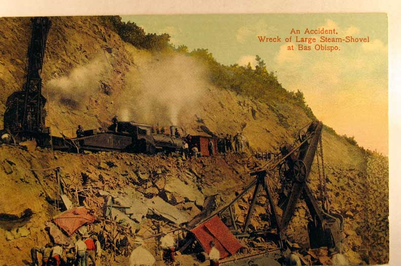 Card # 85199. View Larger | Rotate Panama, “An Accident, Wreck of Large Steam - Shovel at Bas Obispo”, color DB VF