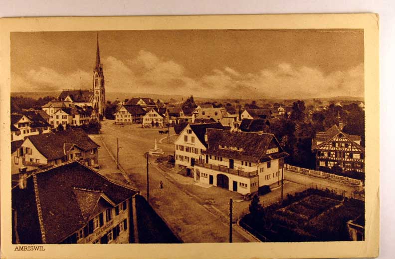 Card # 6016. View Larger | Rotate Switz., Amriswil Sepia Printed Photo Used to U.S. 1924 m cor cr F-VF