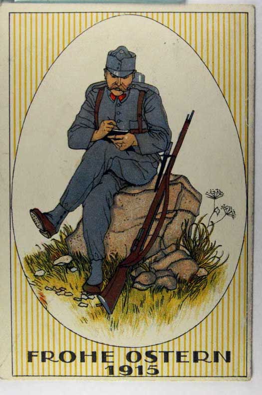 Card # 46894. View Larger | Rotate W.W. I German Patriotic, Quality Card w/ Easter Greetings, used 1915 w/ Feldpost Cancel DB emb m cof F-VF