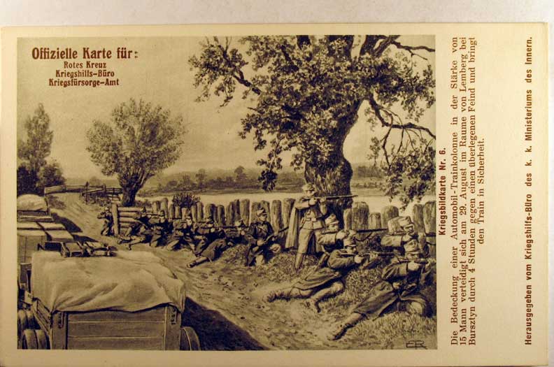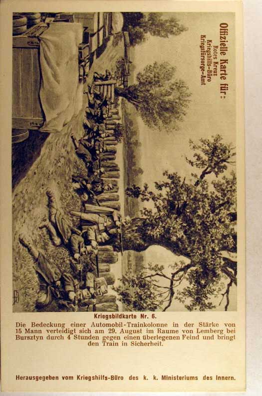 Card # 68626. View Larger | Rotate W.W. I Austrian Official Red Cross Kriegsfursorge-Amt Ser., Nr. 6, Protecting Auto Convoy, B&W VF