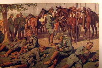 Card # 72095. View Larger | Rotate W.W. I German Red Cross Wohlfahrtskarte, Cavalry, used 1916 w/ Feldpost Usage some paper on face F-VF
