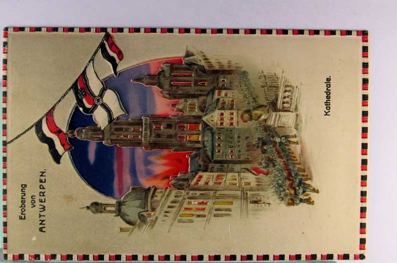 Card # 131763. View Larger | Rotate W.W. I German pub. Hold To The Light, Die Cut, “Eroberung von Antwerpen” DB VF
