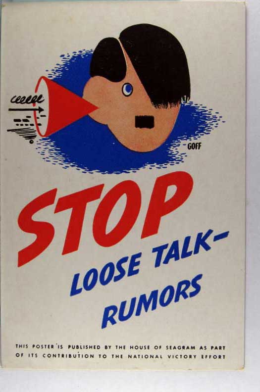 Card # 192560. View Larger | Rotate W.W. II U.S. pub. Seagram Distellers Corp., “Stop Loose Talk - Rumers” w/ Hitler VF