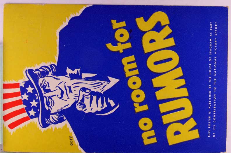Card # 147461. View Larger | Rotate W.W. II, U.S. Pub., “No Room for Rumors”, w/ Uncle Sam, Adv. Seagram Distillery Near VF